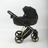 Barnevognens bakben er laget av aluminiumslegering polert til gull, eller sølv, som gir stil og eleganse til Vognen.